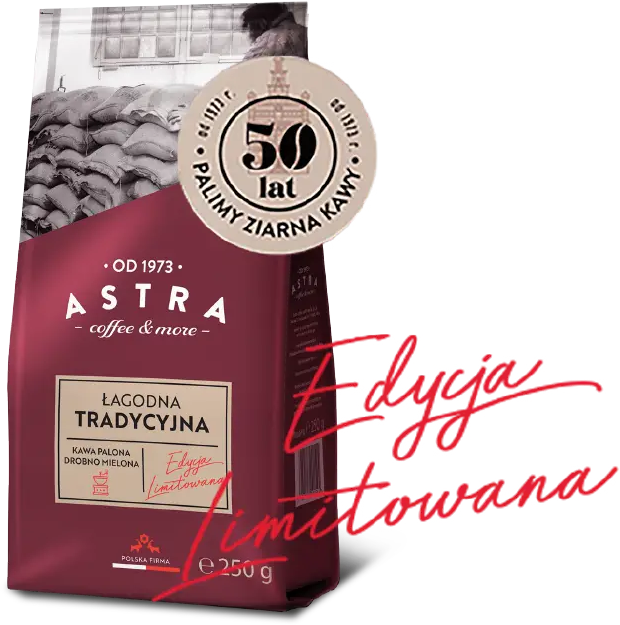 Aby uczcić nasze 50. urodziny, stworzyliśmy limitowaną edycję produktu uwielbianego przez naszych klientów. Tak wyjątkowe i ponadczasowe, jak historia minionych lat! Astra Łagodna Tradycyjna mielona zaprojektowana